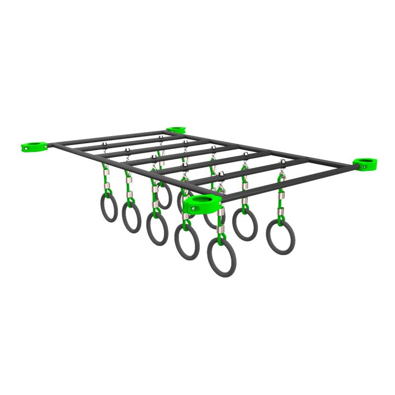 - Рукоход с подвесными кольцами добавляет динамику и сложность упражнениям на плечевой пояс и спину для развития координации, силы хвата и баланса.
