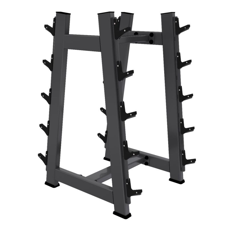 Профессиональная стойка для коммерческого использования A3055 Стойка для штанг (на 10 шт.) предназначена для безопасного и компактного хранения грифов и неразборных штанг различного типа. Конструкция обеспечивает удобный доступ, экономит пространство и поддерживает порядок в зоне свободных весов.