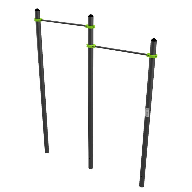 Уличные перекладины разноуровневые (два уровня) для подтягивания из виса на высокой перекладине ZAVODSPORTA* предназначена для установки на уличных спортивных площадках с учетом интенсивной эксплуатации в разных климатических условиях.